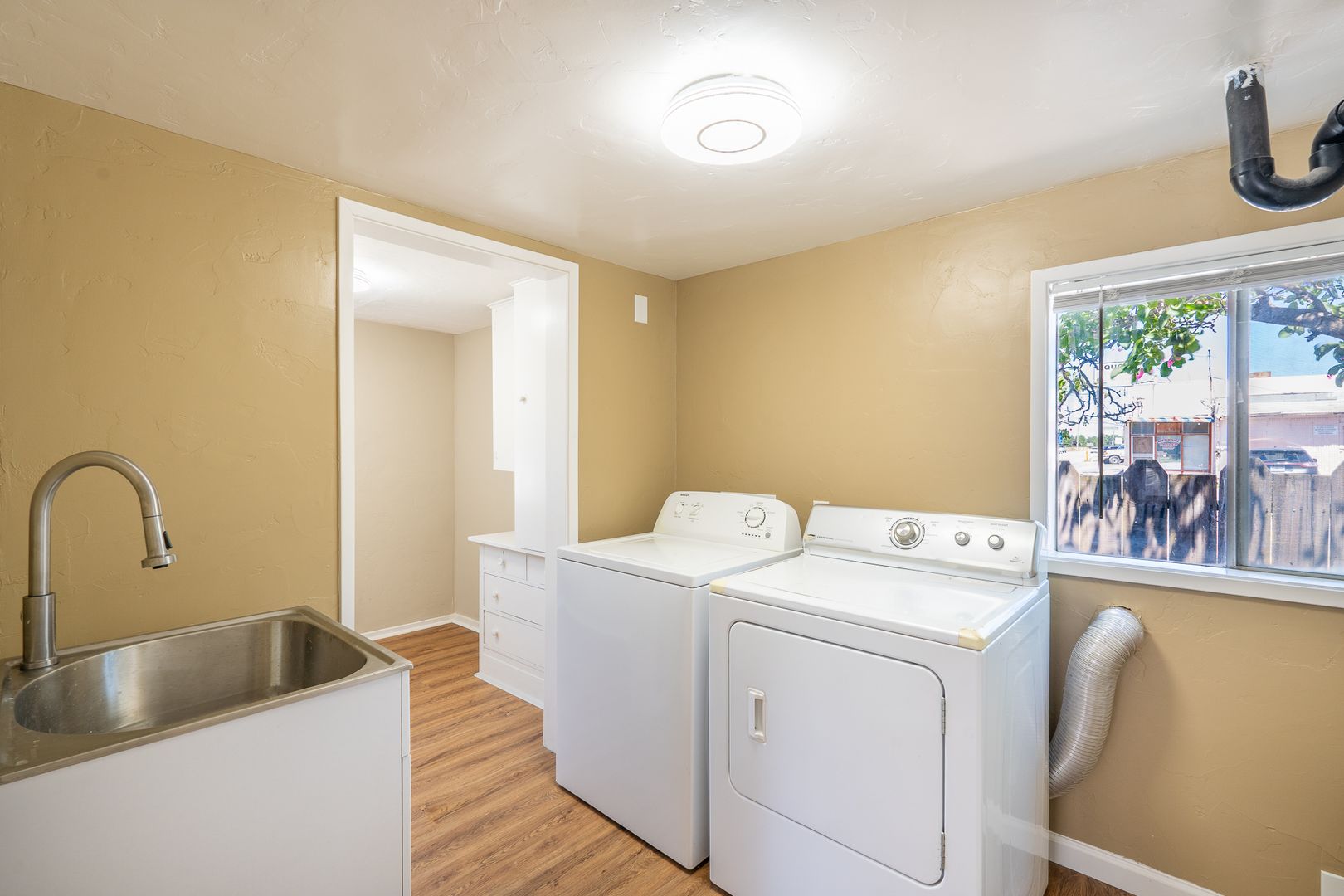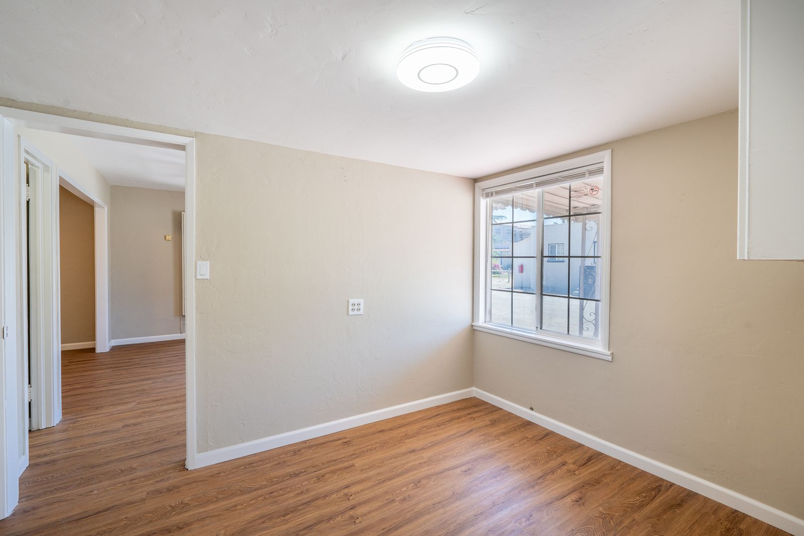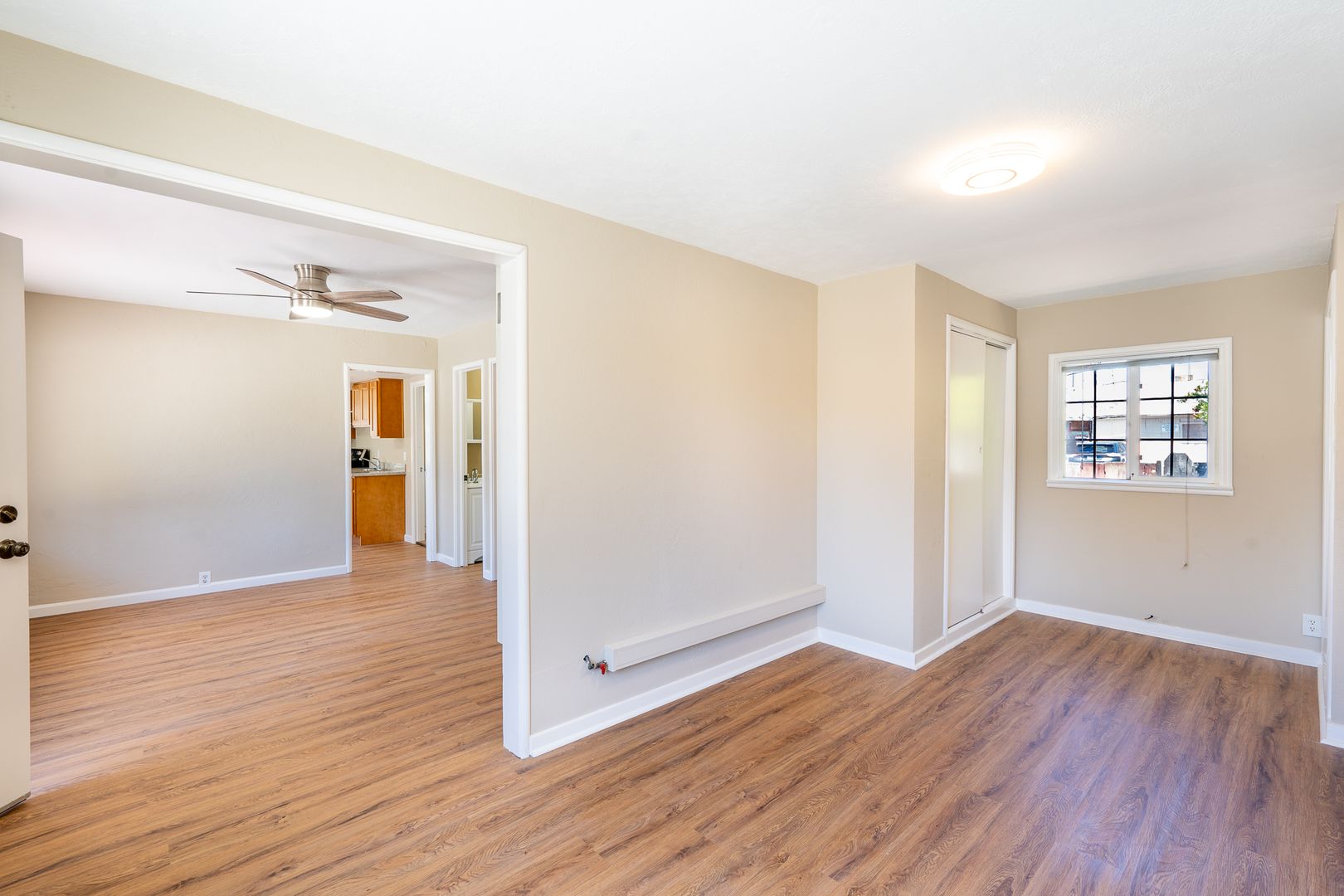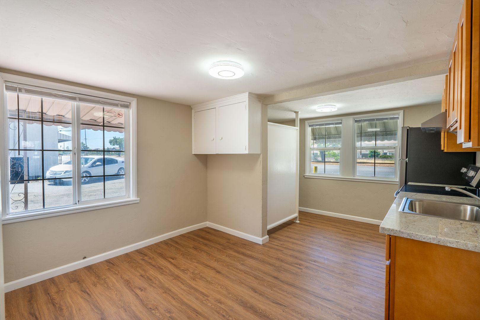 1 bedroom with separate eat-in kitchen, range, refrigerator, living room, dining area, laundry room with washer and dryer. Bathroom with shower, and vanity. All utilities included (water, trash, PG&E). Internet provided. 1 year lease.