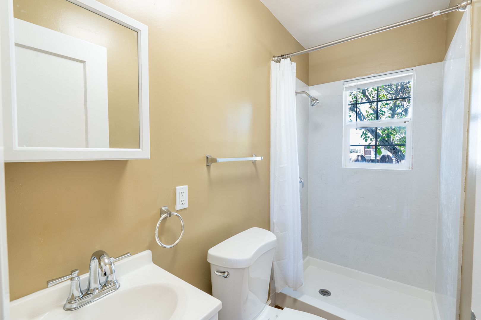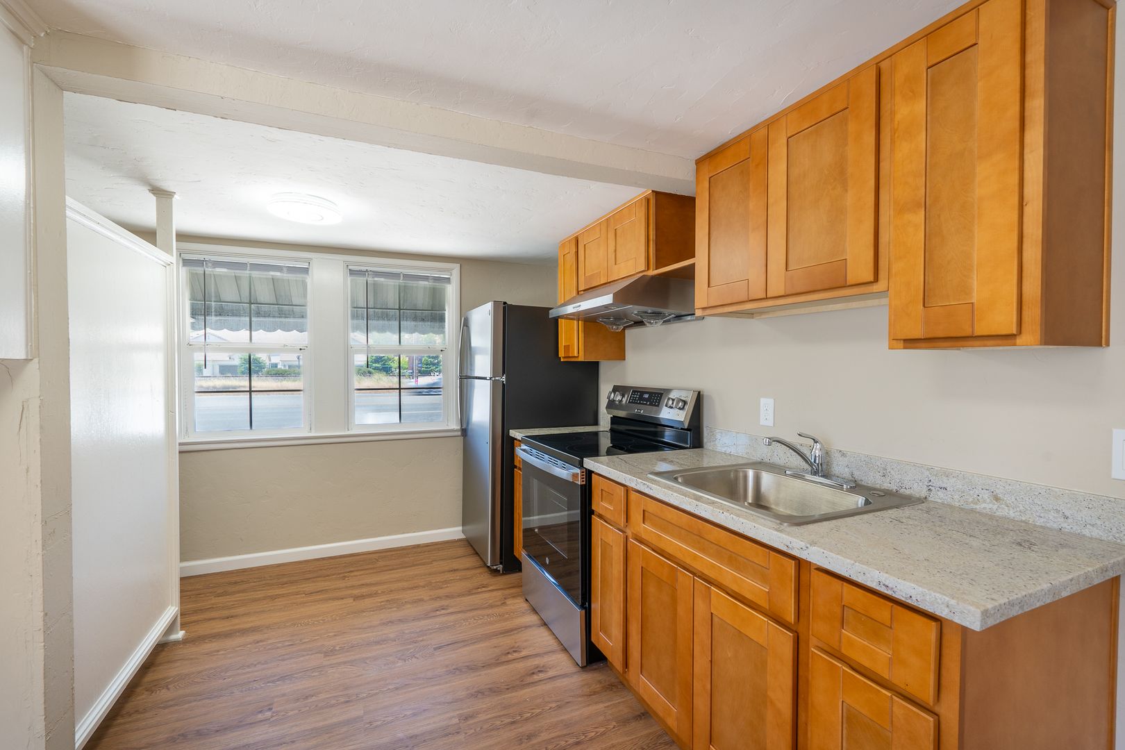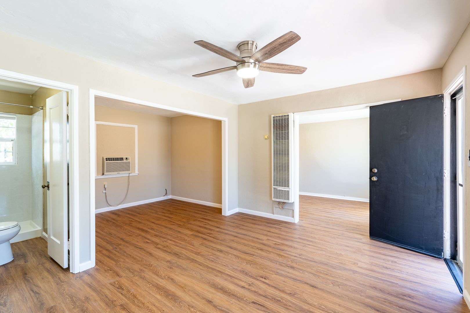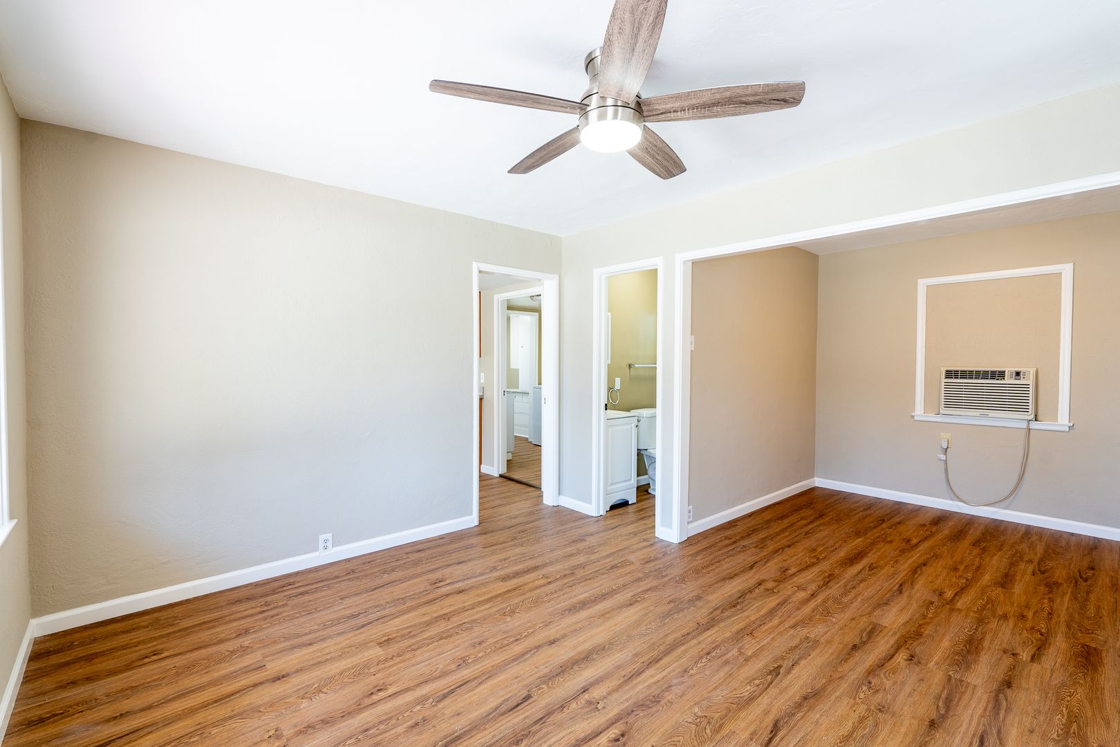1 bedroom with separate eat-in kitchen, range, refrigerator, living room, dining area, laundry room with washer and dryer. Bathroom with shower, and vanity. All utilities included (water, trash, PG&E). Internet provided. 1 year lease.