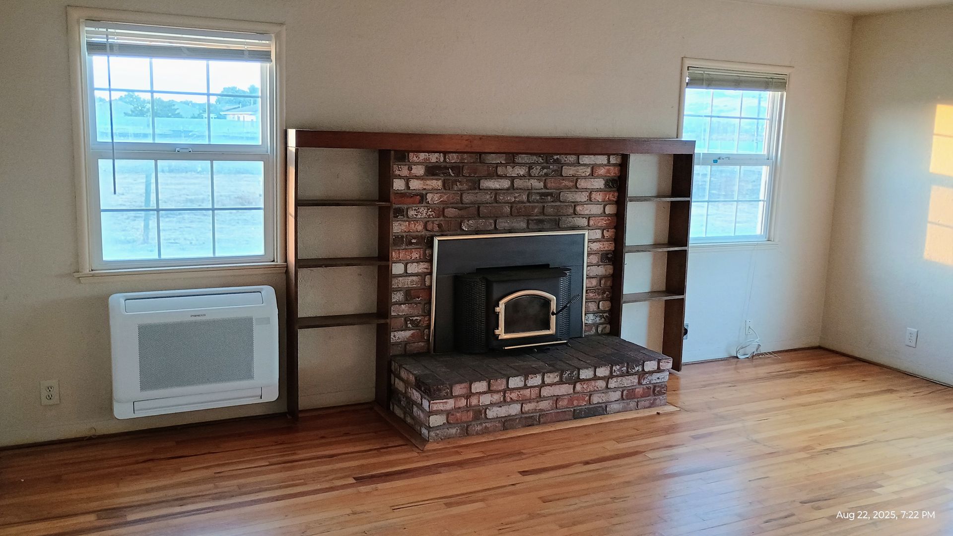 Inside, you’ll find warm hardwood floors, a charming fireplace perfect for relaxing evenings, and a large picture window that fills the home with natural light while showcasing beautiful views of open countryside. The kitchen features a sweet retro-tiled breakfast bar, full of character and the perfect spot for morning coffee or casual meals.